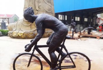 玻璃鋼仿銅戶外騎自行車雕塑