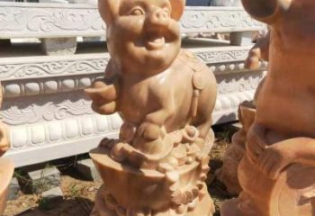 專為公園設計的晚霞紅雕刻豬年招財擺件
