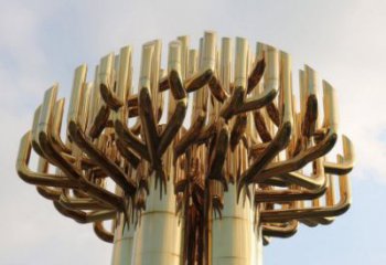 不銹鋼大樹雕塑,金色噴涂