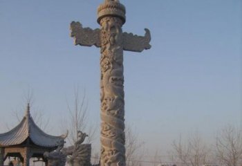精美仿古園林,花崗巖石龍盤柱點(diǎn)綴