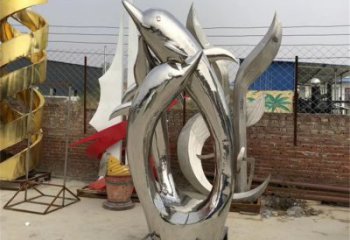 公園街道創(chuàng)意不銹鋼水中游泳的海豚雕塑