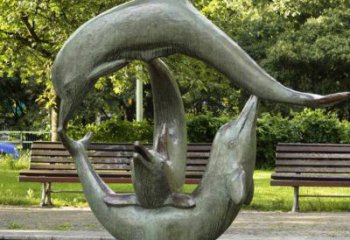 公園里的海豚精致的銅雕擺件讓你體驗(yàn)海洋的美好