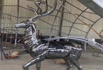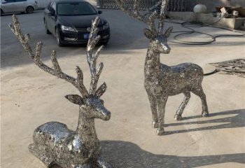 大型不銹鋼鏡面梅花鹿雕塑,美化園林景觀擺件