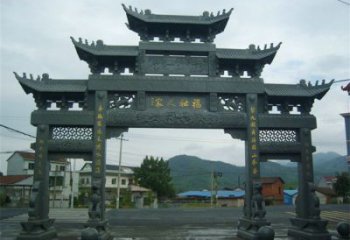 簡約花崗巖村莊三門浮雕牌坊雕塑